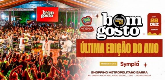 Neste Domingo, 28 de Dezembro, tem a última edição do ano da Roda de Samba do Bom Gosto, a partir das 3 da tarde, na Arena Errejota, no Estacionamento doShopping Metropolitano, na Barra da Tijuca. E tem Promo Super Vip com camarote e consumação! Faça seu cadastro no Site ou App da FM O Dia.… Continue reading Roda de Samba do Bom Gosto – Arena Errejota