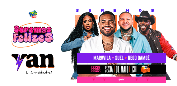 Nesta Sexta, Feriado do Dia do Trabalhador, tem o Projeto “Seremos Felizes” a partir de 1 da tarde com Yan e os convidados Marvvila, Suel e Nego Damoé no Armazém do Engenhão. E tem Promo Super Vip no App ou Site da N1. Participe! Promoção: FM O Dia.